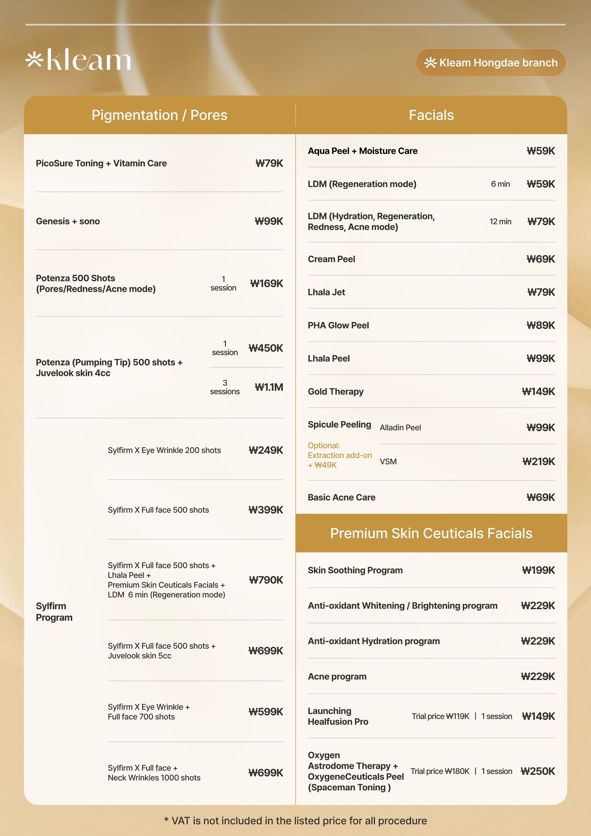 - 價格實惠且透明 評論中反覆提到的一點是診所定價透明,性價比高。對於許多台灣訪客而言,韓國醫美療程的費用(尤其是在服務國際顧客的診所)比在台灣更實惠。弘大 Kleam 診所常被稱讚其價格具競爭力且無隱藏費用。